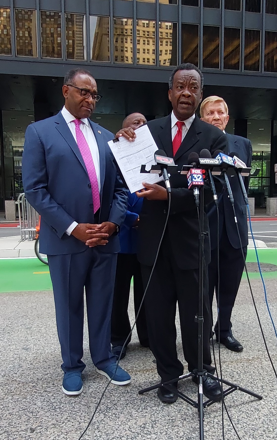 “This is not a political situation for me,” says the lead plaintiff and mayoral candidate, Dr. Willie Wilson, at a press conference outside the Dirksen Federal Building on August 29, 2022. “I would be doing this even if I wasn’t running for office. Too many people have died for us to have the right to vote.”