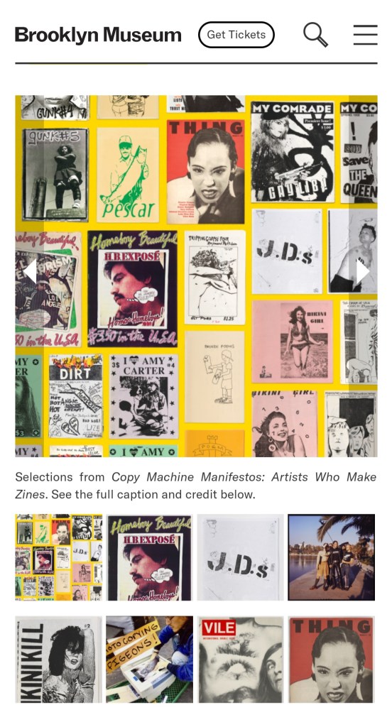 On Wednesday, Nov. 15, 2023, we attended the Brooklyn Museum artists’ reception for Copy Machine Manifestos: Artists Who Make Zines. The extensive exhibition covers 50 years of American-made zines starting in the 70s.